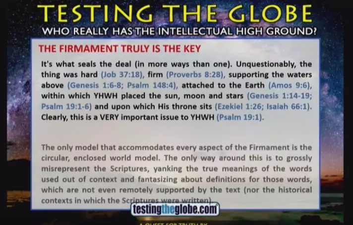 The only thing I question is the name "YHWH". I tend to stick to the names that I know and read from the KJV bible. But this is quite the fantasy if they have the world believing in a globe. They will do anything they can to try to hide that everything was created by God.