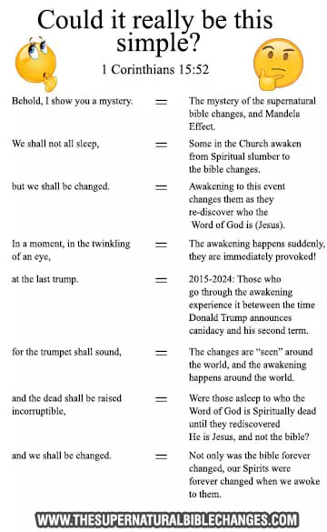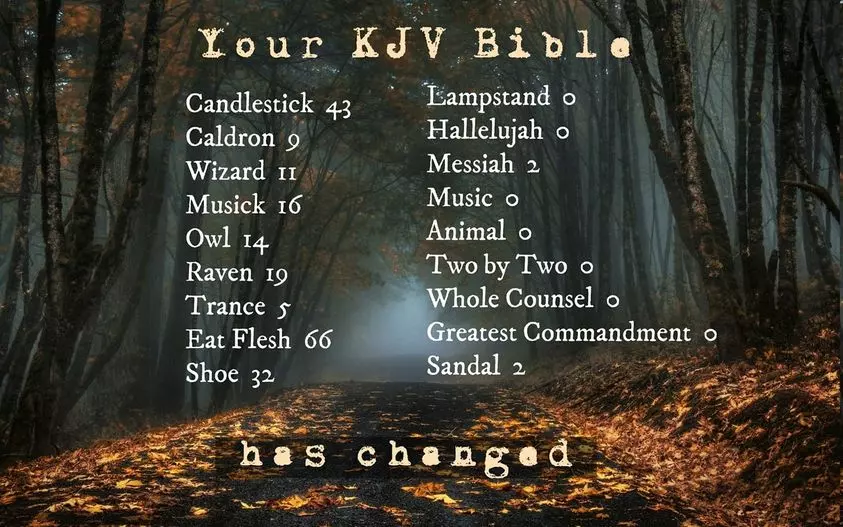 It's creepy that "consider the sparrow" got changed to "raven" and people don't want to know about it. It is horrifying that Messiah has been exchanged with "messias" in the KJV version and it doesn't seem to bother people. I will say that I do not remember "Hallelujah" at all. But to go with that I will say that I was puzzled when people started calling God "Yah" and "Jah" when I joined online christian groups in 2017. It makes perfect sense that I didn't know this because I had no idea about the supernatural changes. What is missing from this list is "Magick" which should be on the same list but excluded because the Mandela Effect removed the word later on after it was switched again to something else. Magick can still of course be read in "The book of wisdom" that was one of the books removed from the protestant bible. A Youtuber had done a video about "magick" being in the kjv bible back when I woke up to the changes in 2018. For some reason this youtuber has no recollection of reporting on this change that had taken place within the KJV. Why does this youtuber not remember? I can't say because I don't know how someone that sees the changes would not remember something they did on sharing the changes.