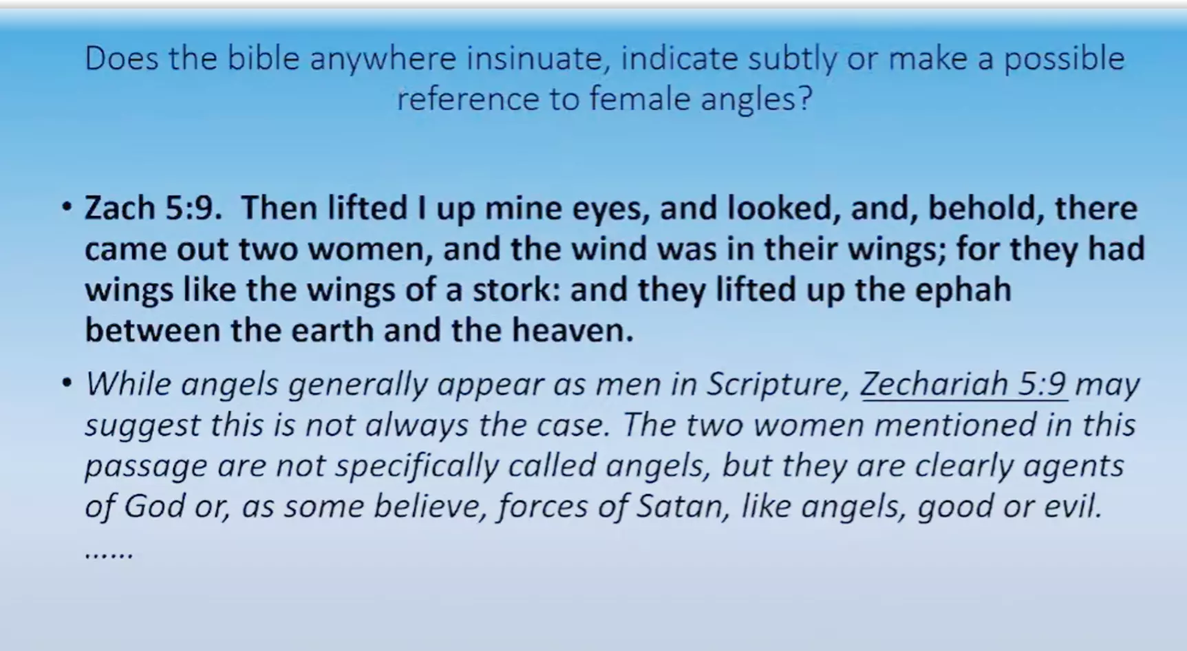 The following images are taken from John's presentation. The first one talks about female angels in Zechariah 5:9: