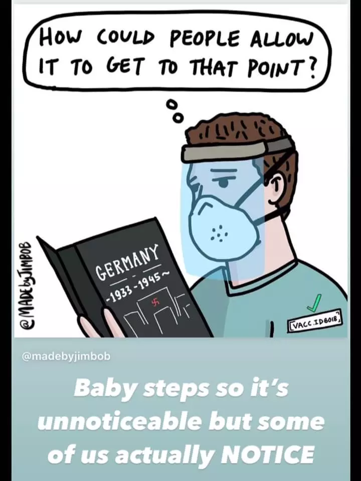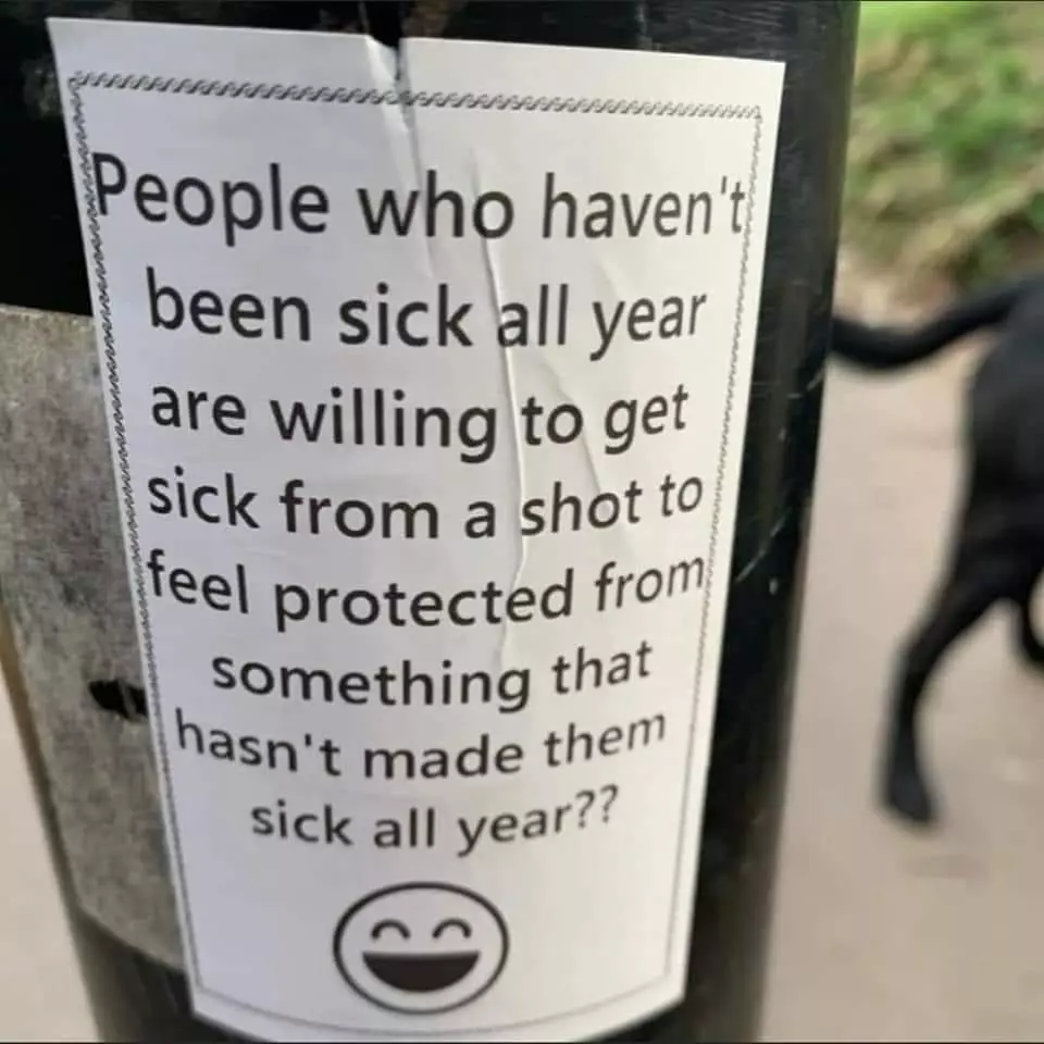 People should know that the masks that people are wearing really do not protect against a virus when it could just go in between the threads of the fabric easily. It's like trying to stop water by using a chain link fence. The water will just go through the fence....and yet most just blindly wear their masks thinking it is doing something to help. They then ask people to take a shot that doesn't protect you from getting the virus, doesn't protect you from the symptoms, and doesn't prevent you from spreading it. It also doesn't prevent you from getting the virus again in the future. So why are people blindingly taking it when the side effects are worse up to and including death when the survival rate of people getting the virus and developing antibodies normally is around 98 percent?