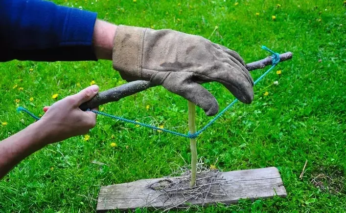 Set up like this you would move the bow back and forth so that the drill would create friction at the base of the wood. With enough effort you should be able to create an ember with enough heat. Blowing on it will help at the right time, but make sure you have good tinder to help the fire build and grow.