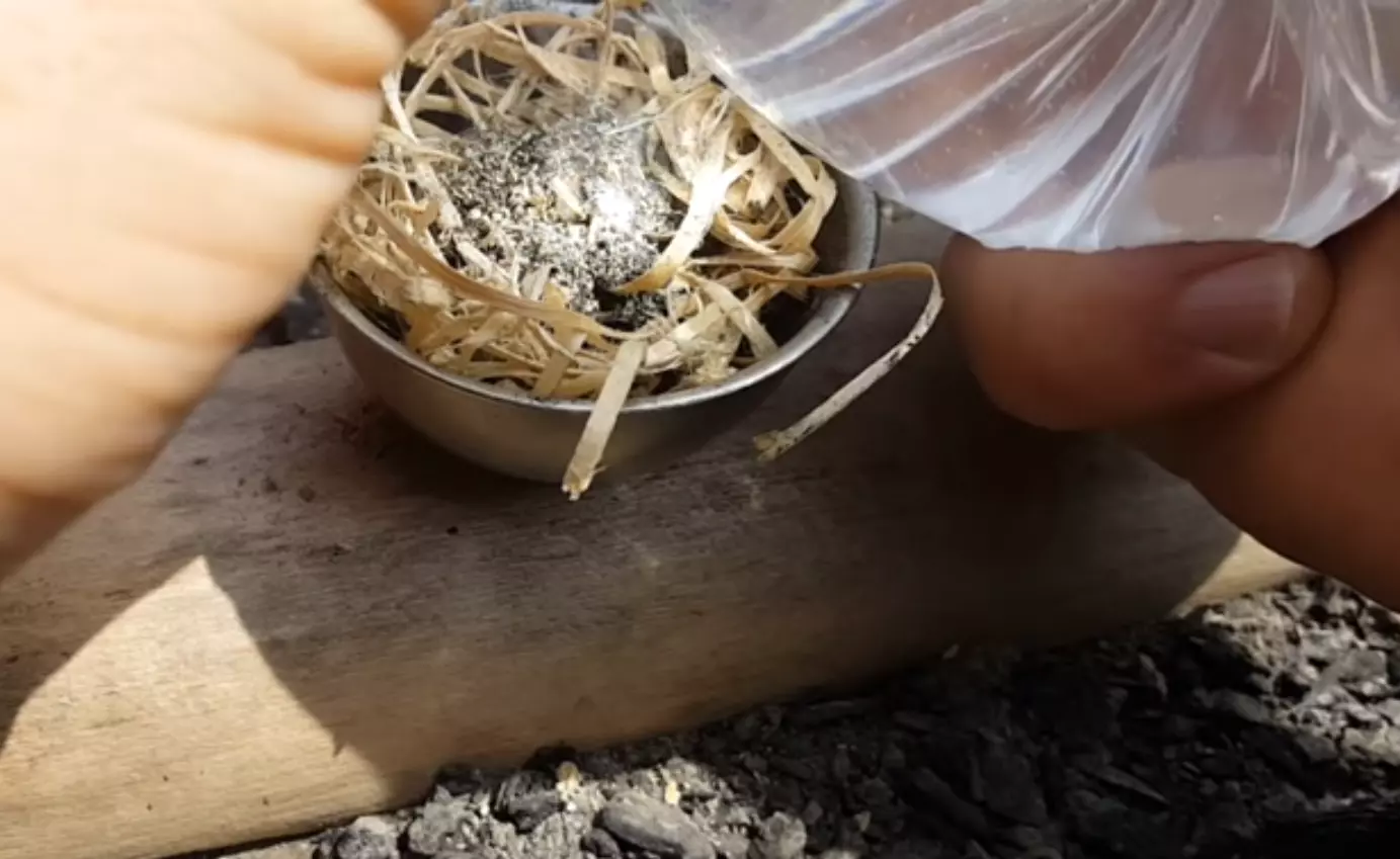 The first way is to use a magnifying glass. You would use small tinder that is easily burnable and put in a small pile. Bark that is stripped apart that is dry can help. Then you use the magnifying glass and focus the light into a small dot like the photo above. When it catches enough heat it will smoke and start to burn. Slowly blowing air on it can help the fire build up.
