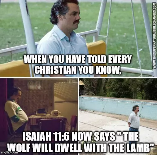 I never knew how people could think they were following Jesus but then on Judgement Day be turned away with Jesus saying "Depart from me for I never knew you." The bible changes makes perfect sense in this case because they are following the wolf instead of our Shepherd.