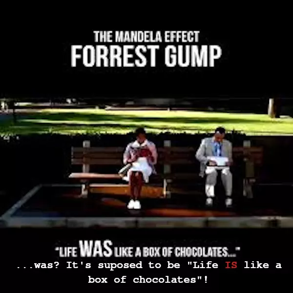 "People saying that oh those of us have seen the changes are from one universe or chosen for something and the other ones are from another universe or whatever. No! That is not the case and here's why. If there is different people merging from different dimensions then why is it that 100% of the people that I've told or asked and it's been dozens 100% remember "Life is like a box of chocolates".