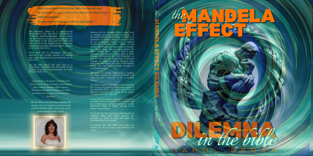 I have written a book titled, “The Mandela Effect in the Bible”. For those who want all the information in one place, this book is for you. It has over 100 pages of Bible changes, in order by book and verse, loads of pictures of residual, a 50 question Bible quiz, and discussion of all the various theories explaining the phenomenon.