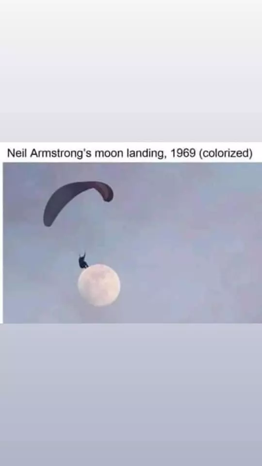 I get why the meme was made, but the better thing to point out is the flag put on the moon. There shouldn't be a wind that would make the flag move like it does. It's obviously fake....but I do recall footage looking much more real before the Mandela Effect occurred so I can't give a definite answer to this. It's not a salvation issue but it's still odd.