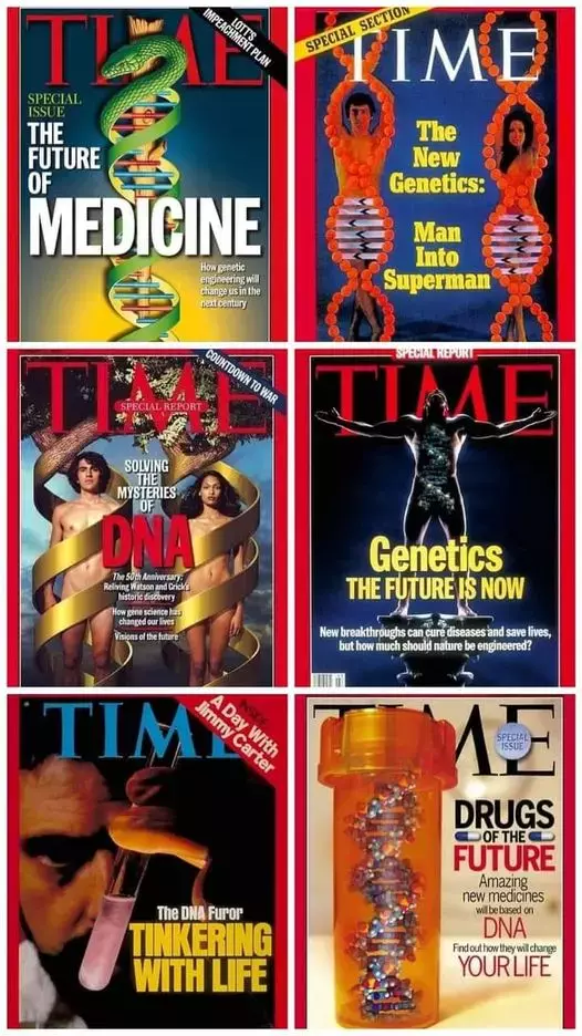Pedictive to show you they have planned all this before now. The devil and his puppets show you years in advance their end time plan. Look at all these Time Magazines. The 1st magazine says the future of medicine and how genetic engineering will change us in the next century. Notice how the snake (serpent : symbol of the devil) is coiled around the DNA.