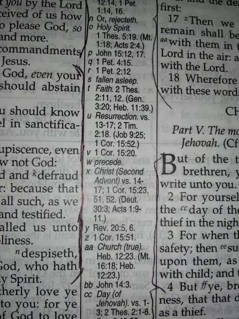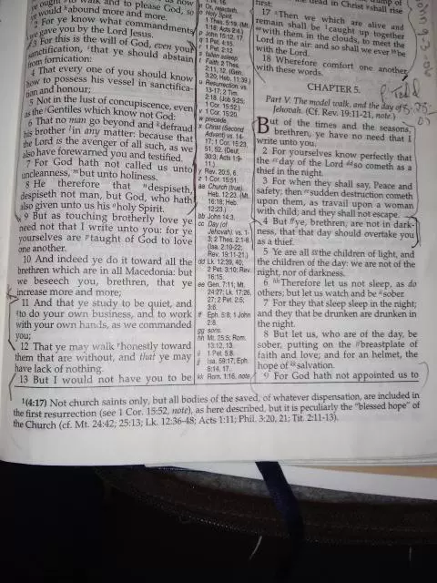 "Sometimes it's like that. I used to have one and I noticed that. Thought it was bad practice myself, but that footnote was on 4:17. I still appreciate it though. I'm afraid that when the AC comes to power, all these pre-tribulation people will be deceived and think that it's Christ. Basically it's hard to think that the AC isn't in power already."