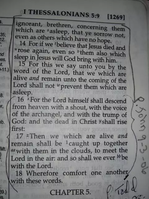"Thanks. But I thought there was a specific footnote about 4:16. Which I believe is what really spurred the whole pre-trib notion along. I mean, the whole pretrib thing is a rather new doctrine."