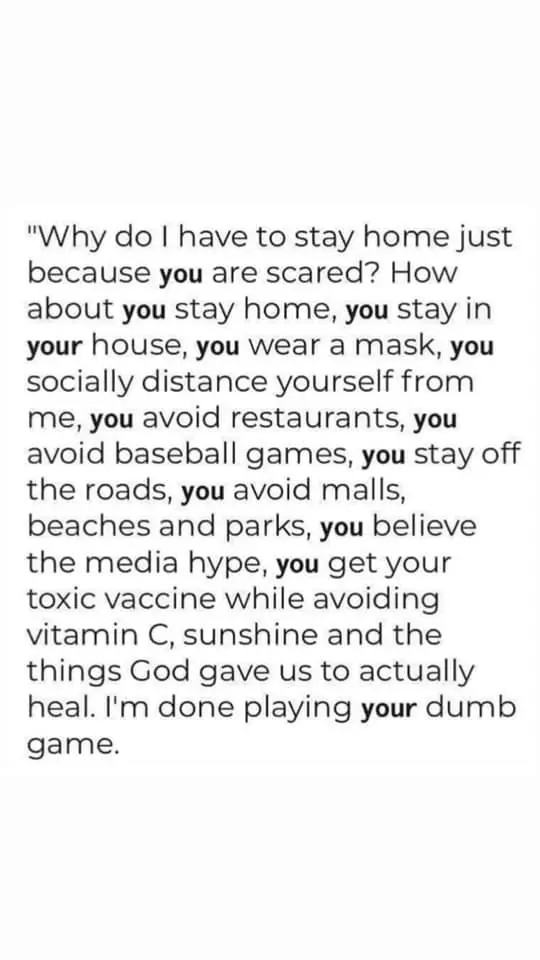 They have fooled most people already in order to take an experimental mRNA shot that changes your dna and possibly compromizing your immune system...but then again no one want's to listen to us. "Trust the science".